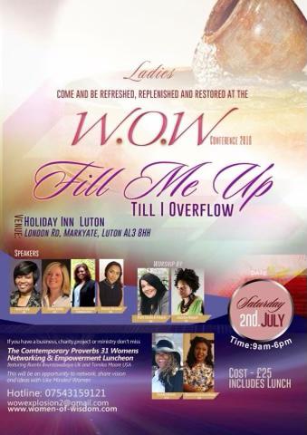 Woman of Wisdom or simply WOW is an annual conference aimed at women around the world. We teach, preach and share the word of God, fellowshipping and spending time in His presence. We have our conferences in The UK, USA and are believing God to expand to other countries globally.
